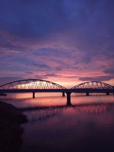 昨日の夕焼け… 初めは雲の色に惹かれて歩いていました。 思わず何枚もスマホでパシャパシャ。 視界に電線やら余計なものが入らない河川敷に引き寄せられます。 そのうち橋を渡っていました。 パシャパシャ。 時間が経つにつれ、色が濃くなっていく。 夕焼け …