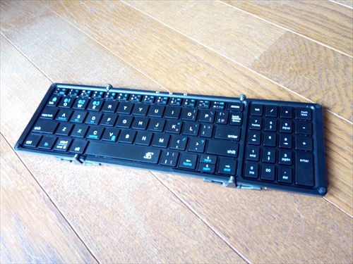 そこでつい先日、どこかの記事で目にした折りたたみ携帯キーボード。今までも、そういうものが存在することは知っていましたし、他にも携帯用の小さいキーボードもありましたが、折り目に妥協しなければいけなかったり、小さいといえどもそれなりのサイズがあったりで、イマイチ手が出ませんでした。