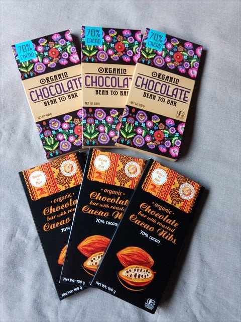 こちらにはカカオ豆を砕いてチップ状にしたカカオニブというツブツブが入っていて違った食感を楽しめます。ということでこのチョコレートも「余計なもの」が入っていない安心して食べることができます。有機栽培で健康意識を高く維持して生産販売されているショップはいつでも応援したくなります。